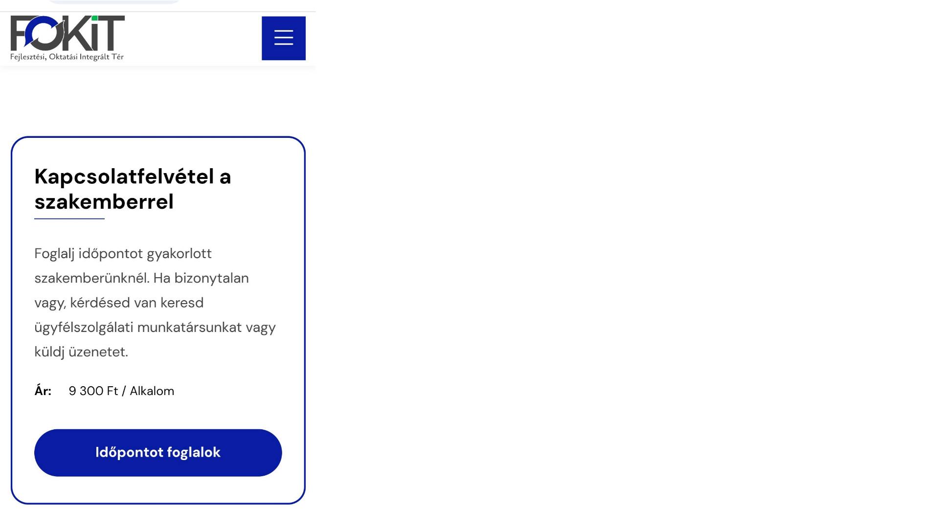 Ha bizonytalan azzal kapcsolatban, hogy melyik szakember, vagy melyik szakterület a legmegfelelőbb az adott probléma kezelésére, az ügyfélszolgálatunk elérhetőségére küldött e-mailes megkereséssel (ügyfelszolgalat@fokit.hu) teheti fel kérdését.